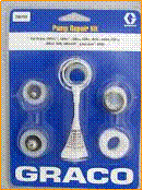 Pump repair kits to repack airless spray pumps. Kits available for many models including